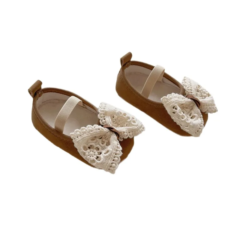 Bonitos zapatos de princesa de encaje blanco para niña, mocasines para bebé, zapatos mocasines con lazo y flecos, suela de goma, calzado antideslizante, zapatos de cuna