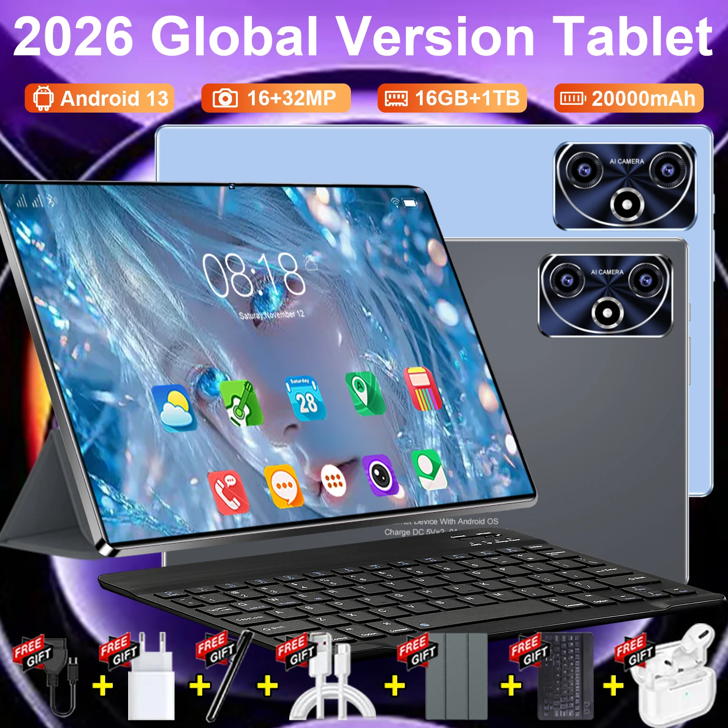 Tablet Global 2026 Android Nueva de 10.36 Pulgadas, 14 Núcleos, Cámara Dual, 16GB+1TB, Android 13, 16MP+32MP, 20000mAH, WIFI, GPS, HD, para Estudiantes