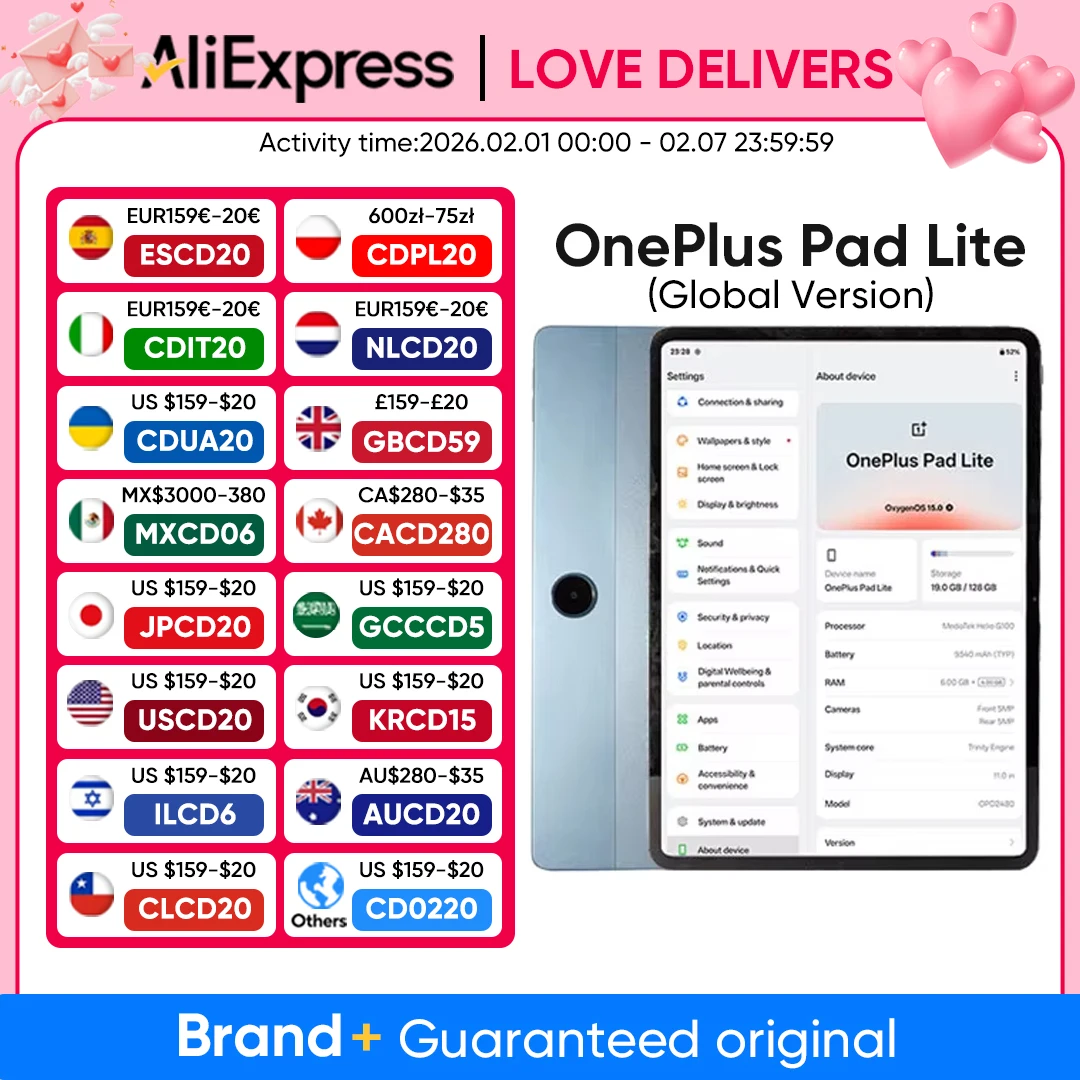 Versión Global OnePlus Pad Lite tableta Android pantalla de 11 "90Hz procesador MediaTek Helio G100 batería de 9340mAh Wi-Fi OxygenOS