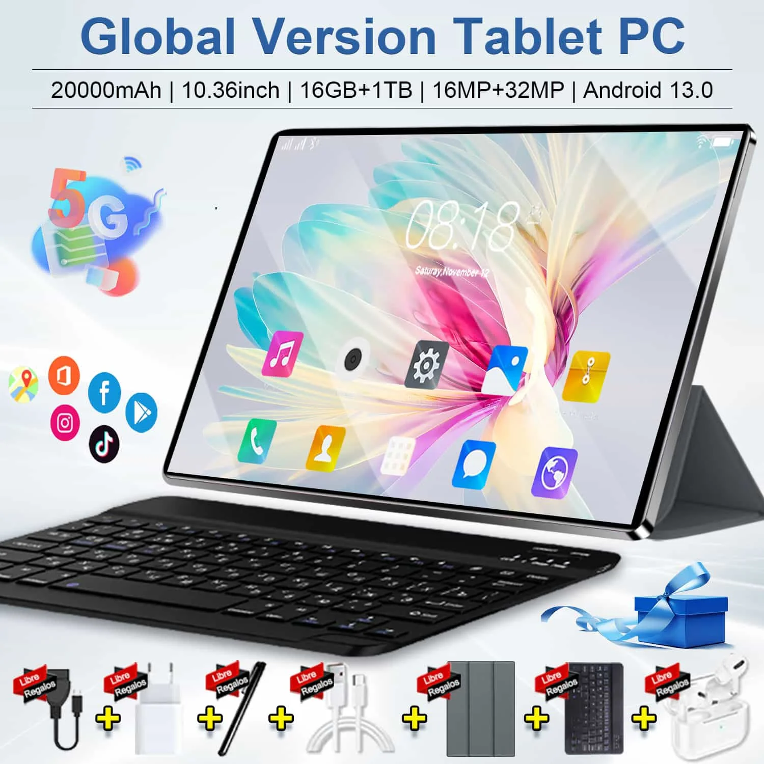 Tableta Android 5G 20000mAh, 10,36 pulgadas, 2026, Global, nuevo, 16GB + 1TB, 14 núcleos, tableta para juegos, tableta de oficina, cámara Dual, WIFI, Bluetooth, GPS