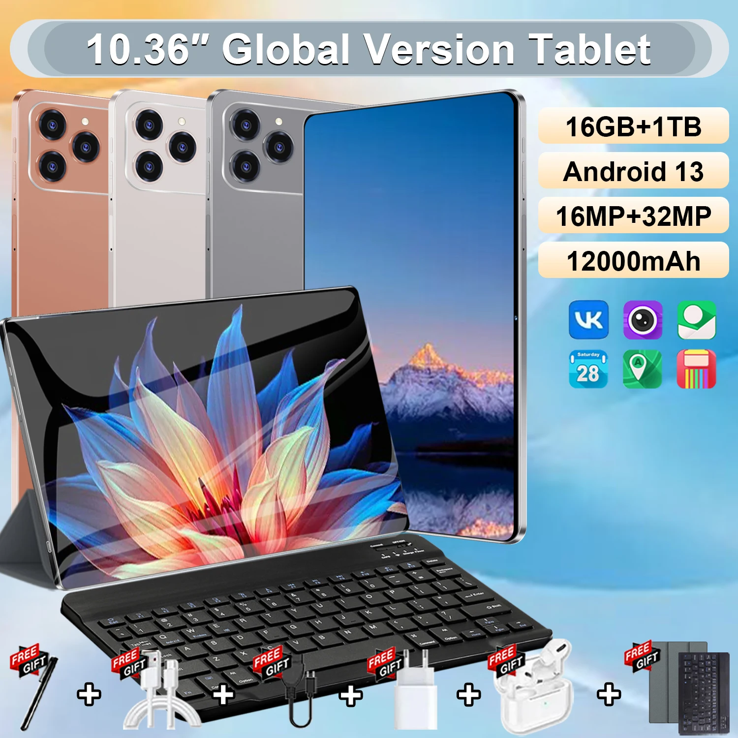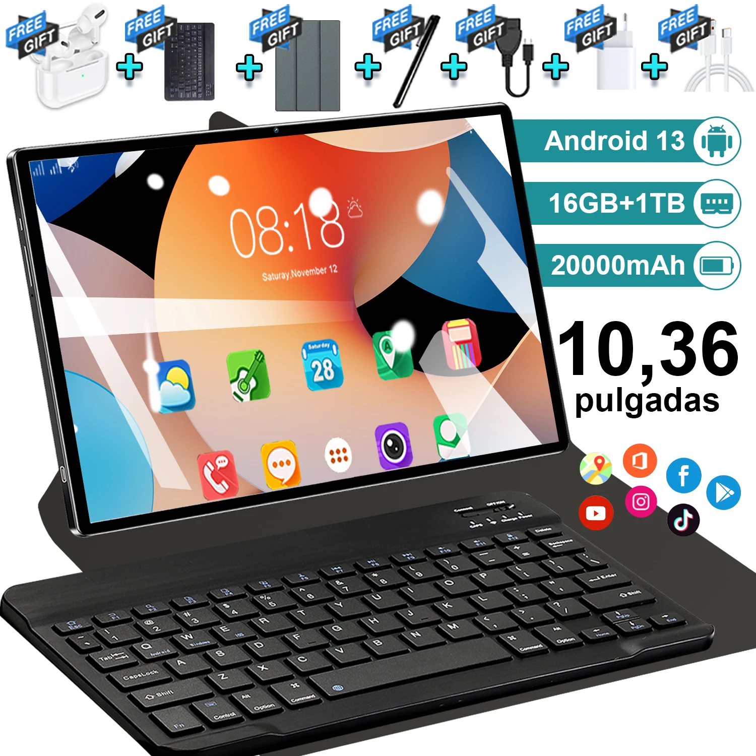 Nueva Tablet 5G 2025, Versión Global, 16GB RAM, 1TB Almacenamiento, Batería de 20000mAh, Pantalla HD de 10.36'', Android 13, 10 Núcleos, Cámara Dual de 16MP+32MP