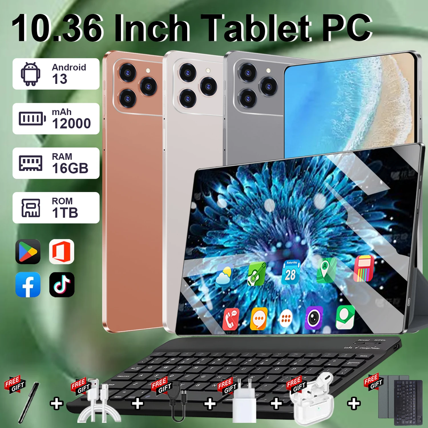 Tablet 5G 2026 con Android 13.0, 12000 mAh, 10 Núcleos, Google Play, Doble SIM, Doble Cámara, 16 GB de RAM, 1 TB de ROM, Pantalla de 10.36 Pulgadas