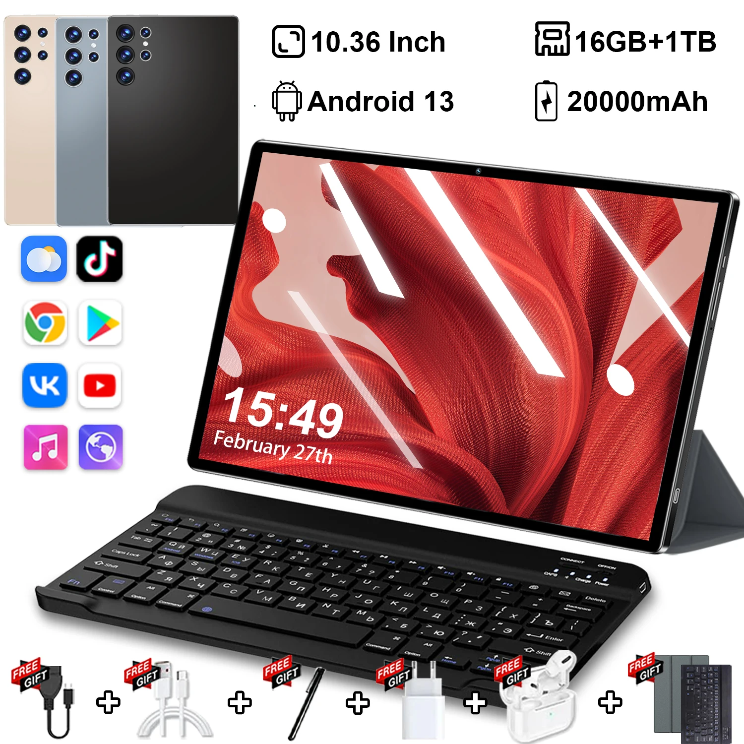 Tablet de 10.36 pulgadas con Android 13, 16 GB de RAM, 1 TB de almacenamiento interno, batería de 20.000 mAh, 14 núcleos y doble tarjeta SIM