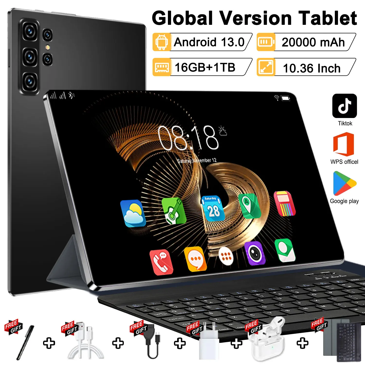 Tablet PC de 20000 mAh y 10.36 Pulgadas con Android 13, 5G, Doble SIM, 14 Núcleos, Cámara de 16MP+32MP, 16 GB+1 TB, Versión Global, WPS Office