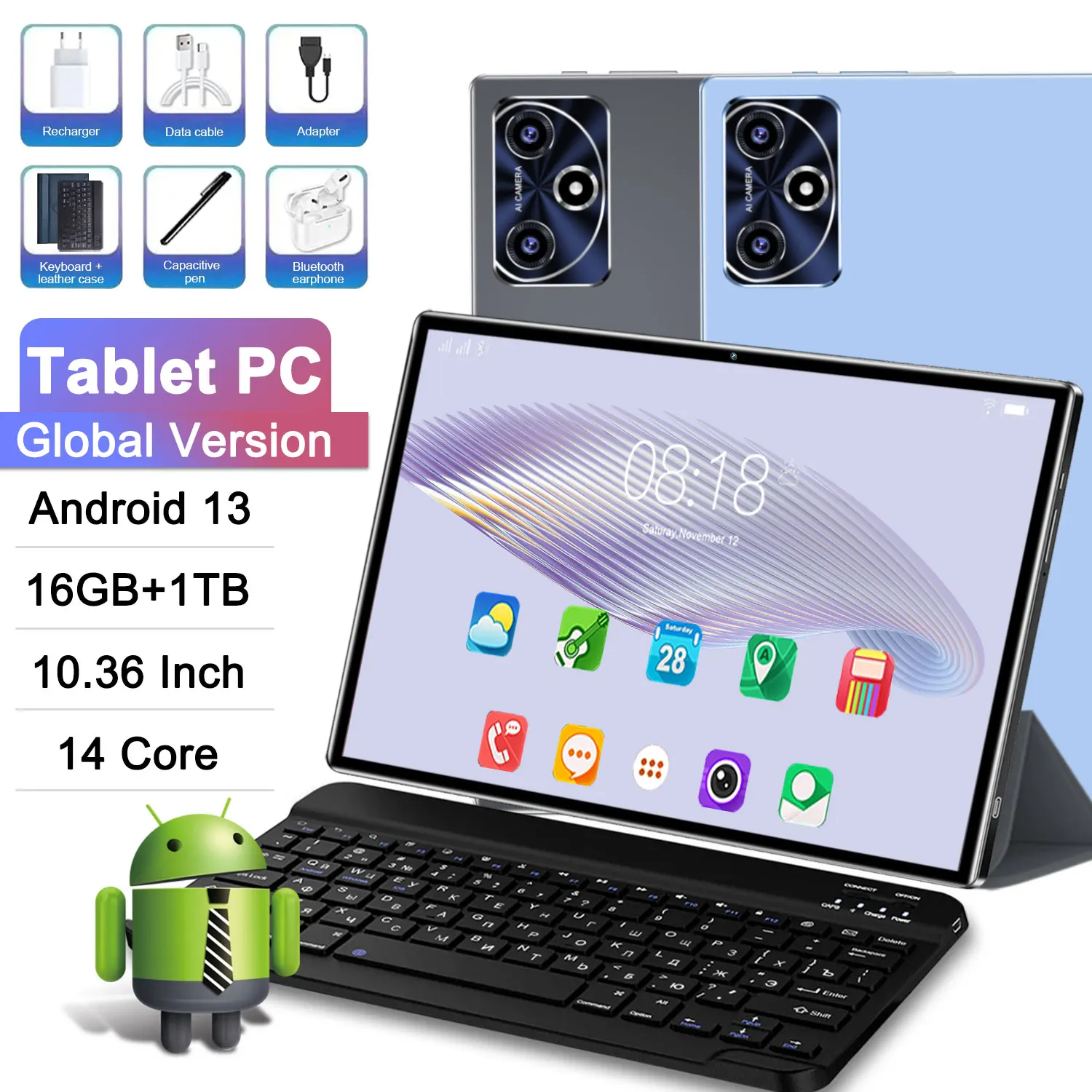 Tablet HD de 14 Núcleos y 2026 HD, 10.36 Pulgadas, Global, 16 GB + 1 TB, Android 13, 20000 mAh, WIFI, GPS, Bluetooth, para Estudiantes y Oficina, Doble SIM