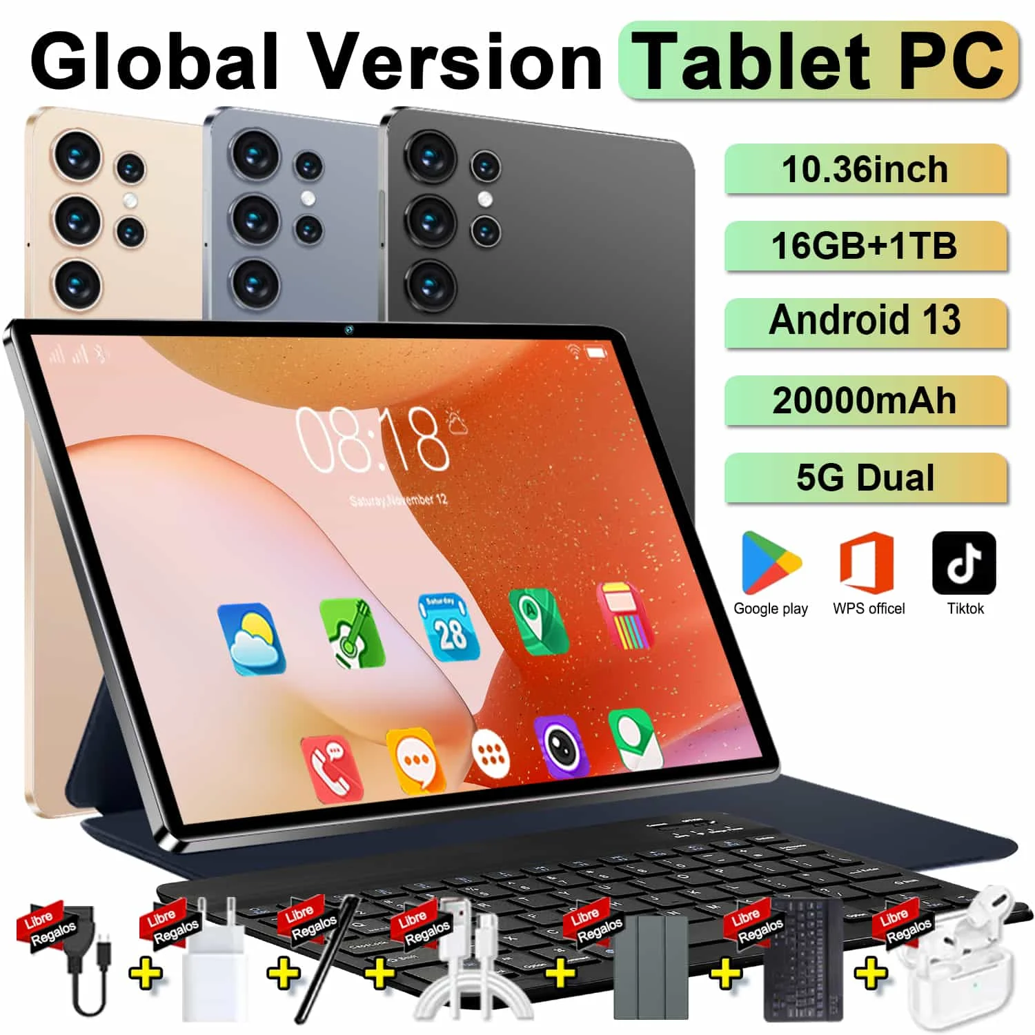 Android13 DualCamera 5G Tablet 2026 Global 10,36 pulgadas 12GB + 512GB 14Core 20000mAh Dual SIM 16MP + 32MP GPS WIFI Bluetooth HD estudiante