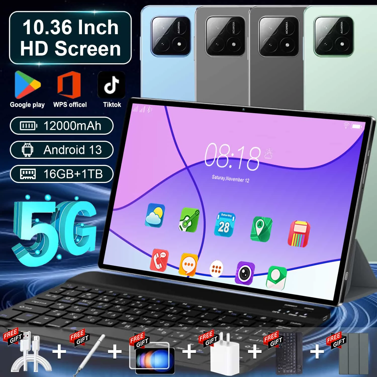Tablet 2026 Global Smart con Nueva Red 5G, Android 13, Pantalla de 10.36 Pulgadas, Cámaras de 16MP+32MP, Procesador de 14 Núcleos, Batería de 20000mAh, 16GB + 1TB, Bluetooth, WPS, Red WIFI