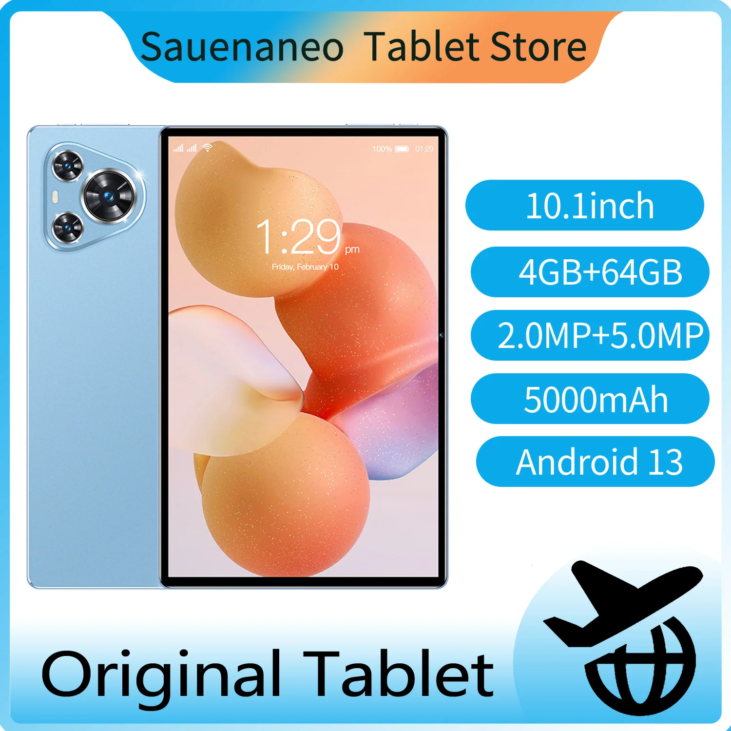 BDF tableta Android 13 de 10,1 pulgadas con batería de 6000mAh 4GB + 64GB de memoria frontal 5MP trasera 8MP cámara Dual compatible con llamadas tarjeta SIM