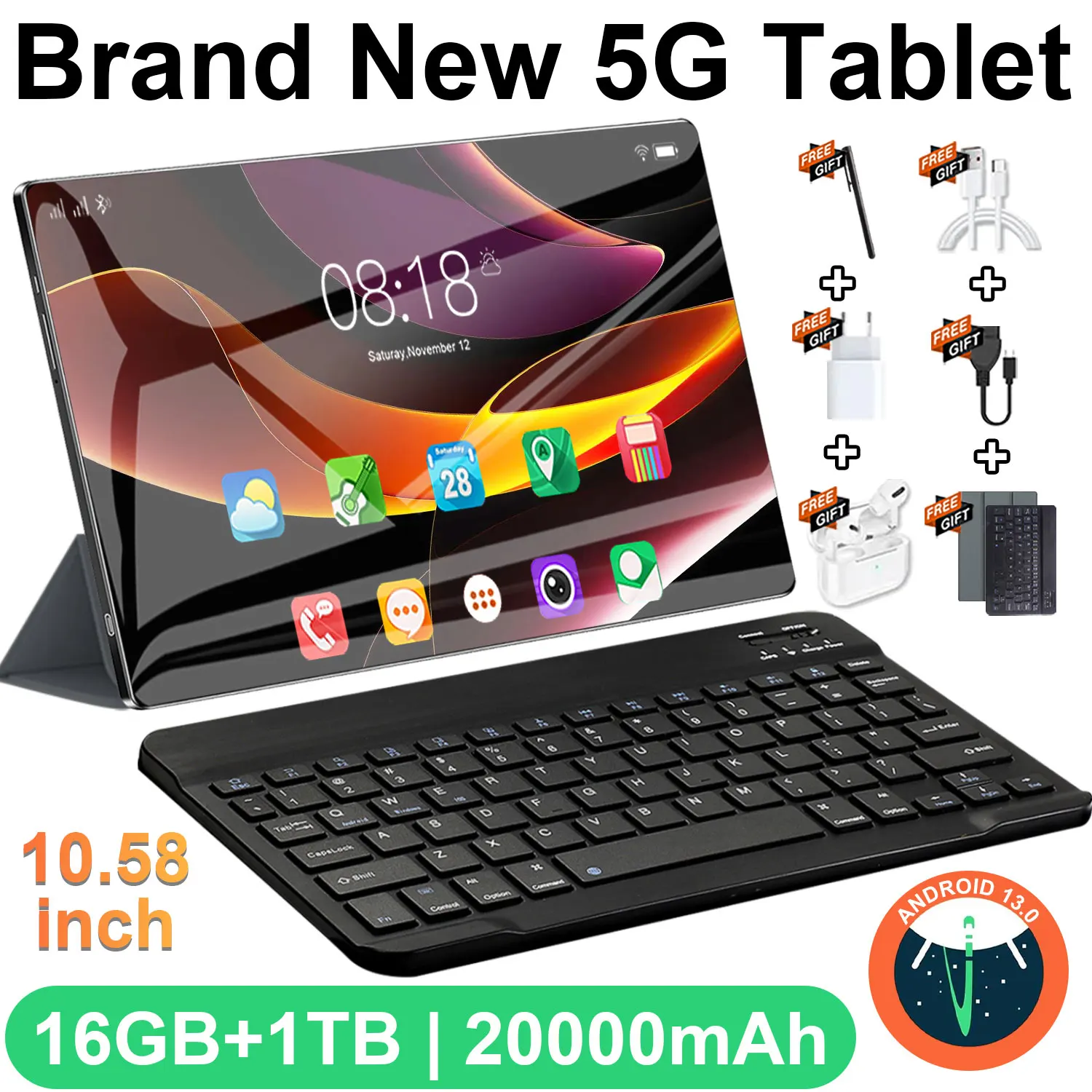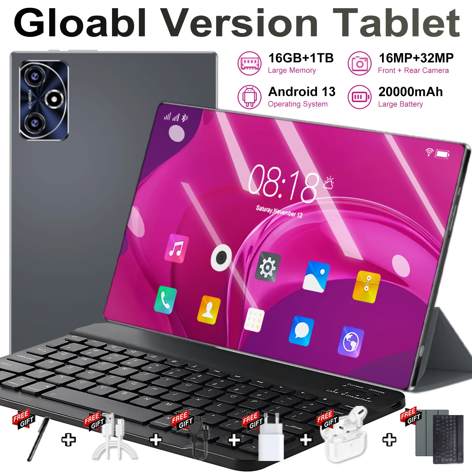 Nueva Tablet Global 2026 de 10.36 Pulgadas, 16GB, 1TB, Android 13, 14 Núcleos, 4K HD, 5G WIFI, Bluetooth, 20000mAh