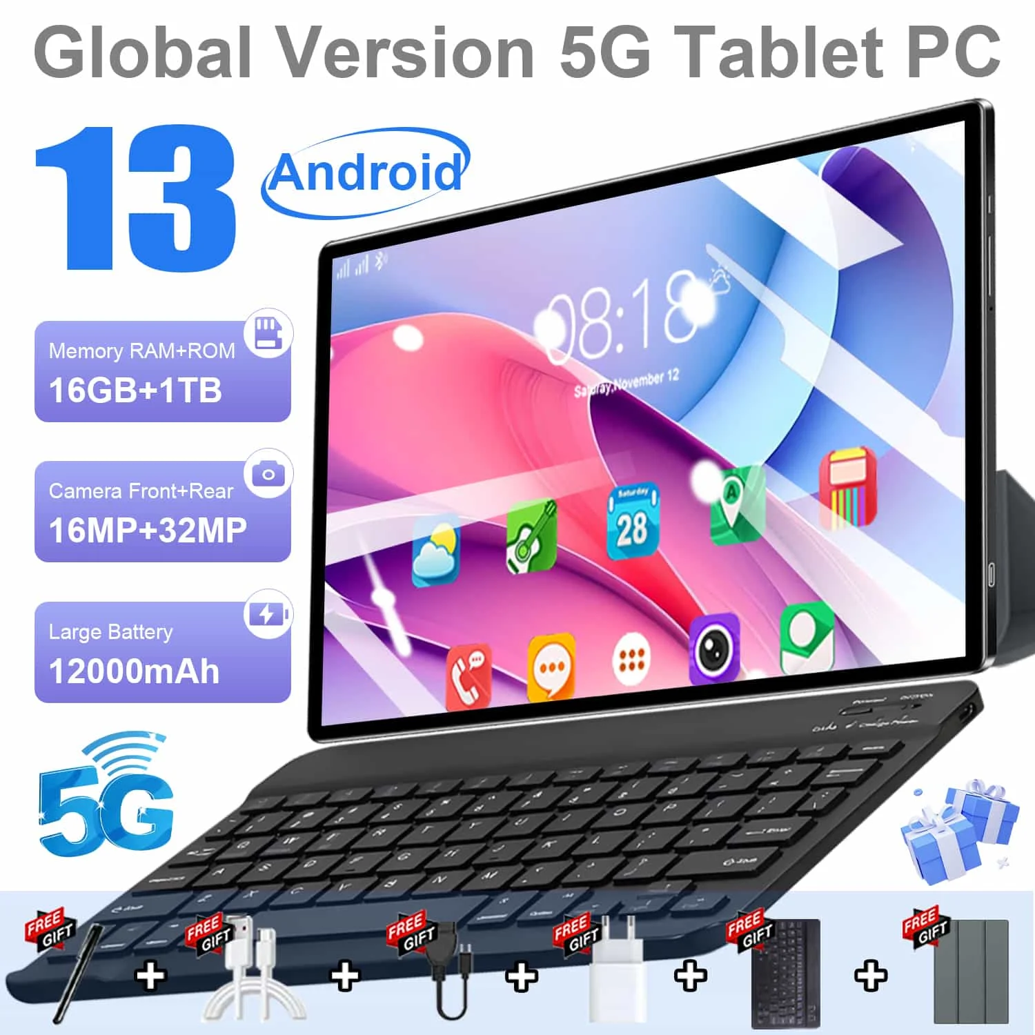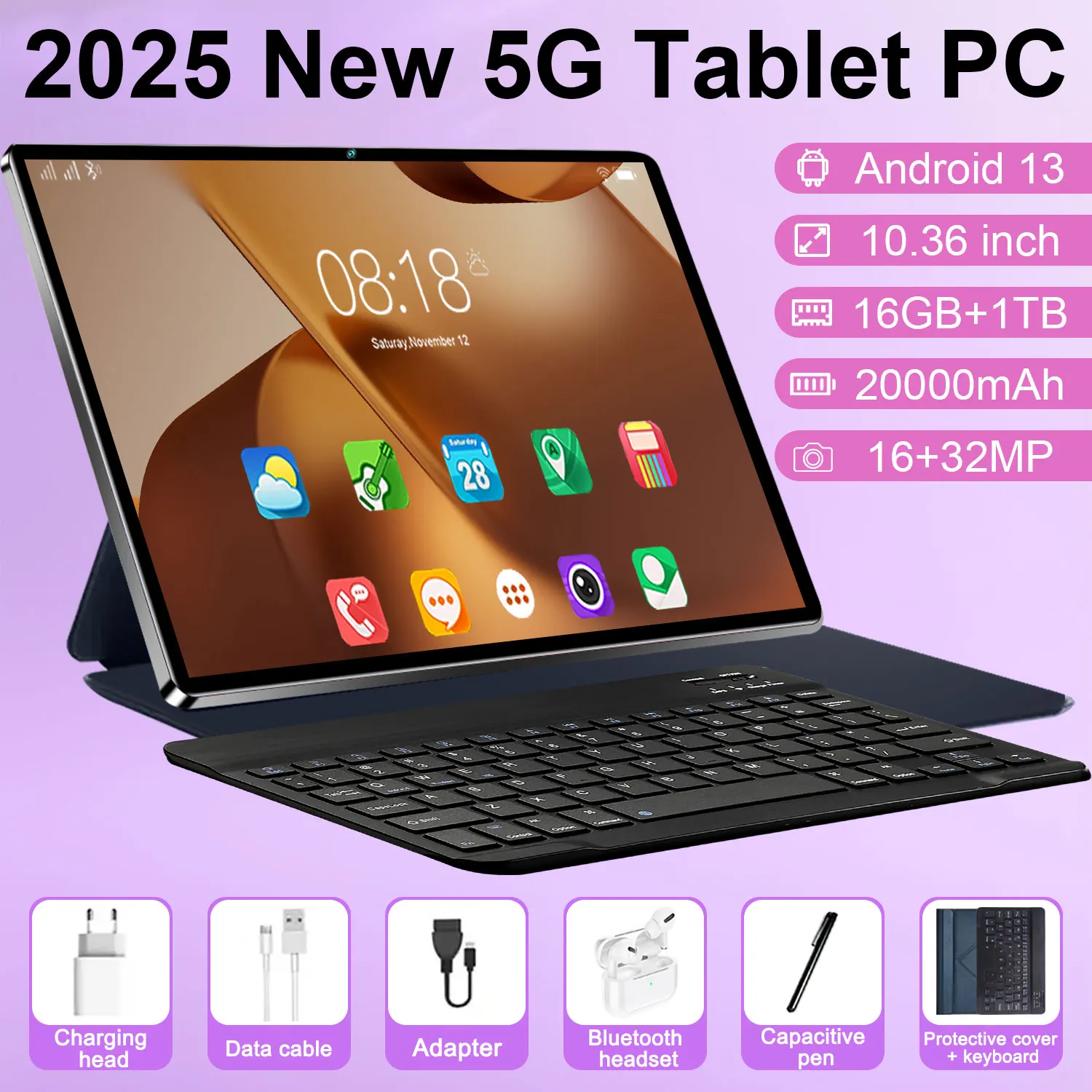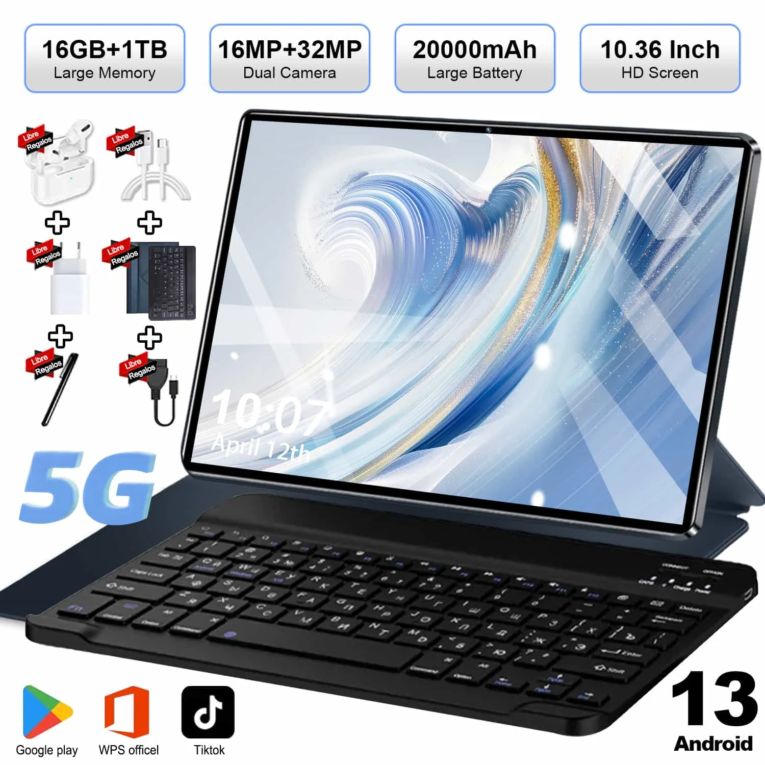 Tableta de 10,36 pulgadas, 2025, 5G, Android 13, pantalla IPS, 16GB de RAM, 1TB de ROM, batería de 20000mAh, WiFi, Bluetooth para sesiones de pantalla prolongadas