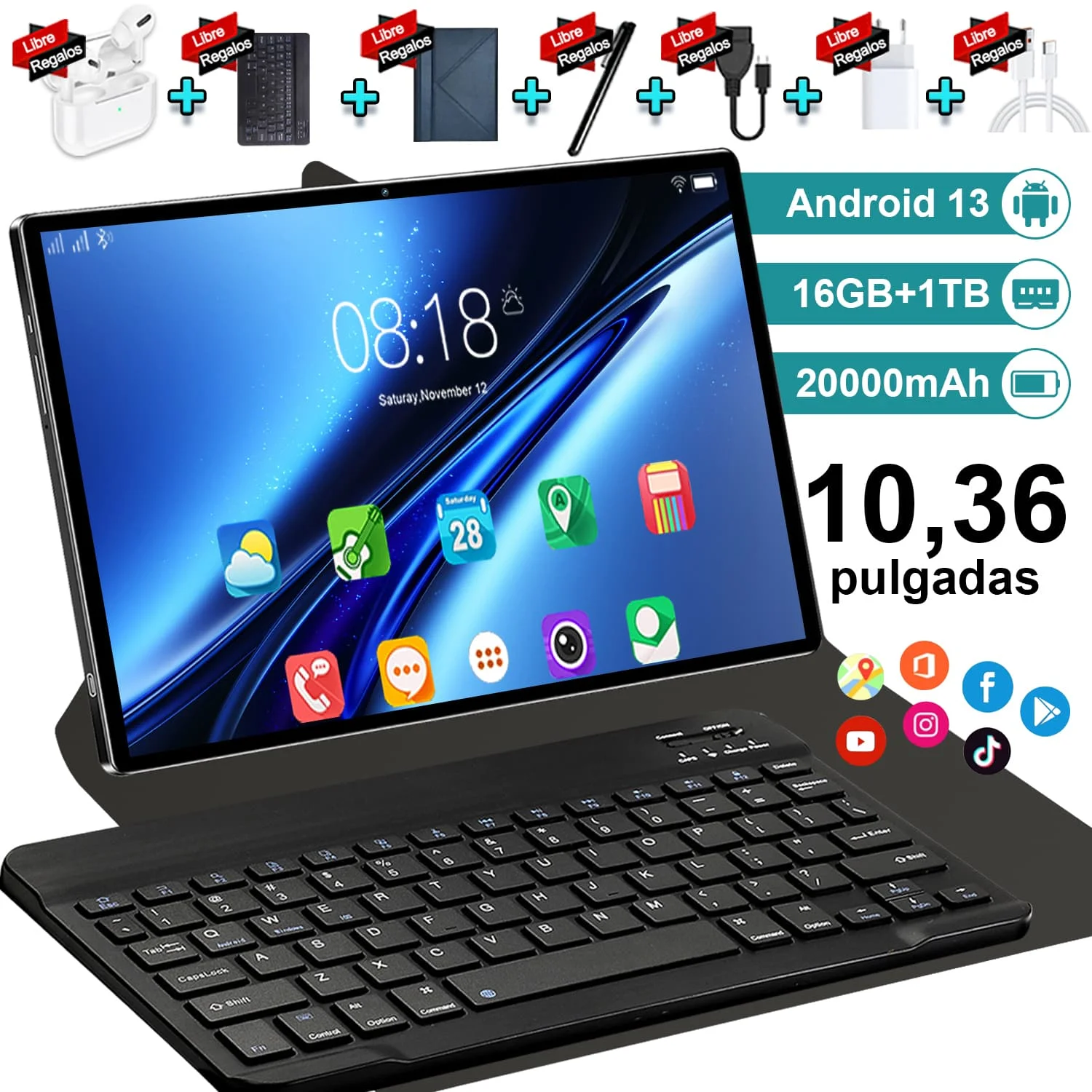 Tablet 5G para Estudiantes, 10.36 Pulgadas, 16 GB + 1 TB, 14 Núcleos, Doble SIM, 20000 mAh, GPS, HD, Bluetooth, Office 2026, Android 13 Global Original