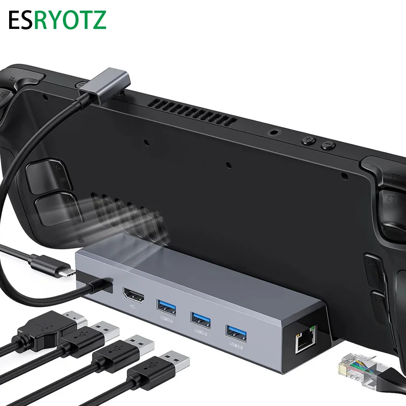 Consola de estación de acoplamiento 6 en 1, carga PD tipo c, salida HD, 3 salidas divididas de USB-A para Steam deck