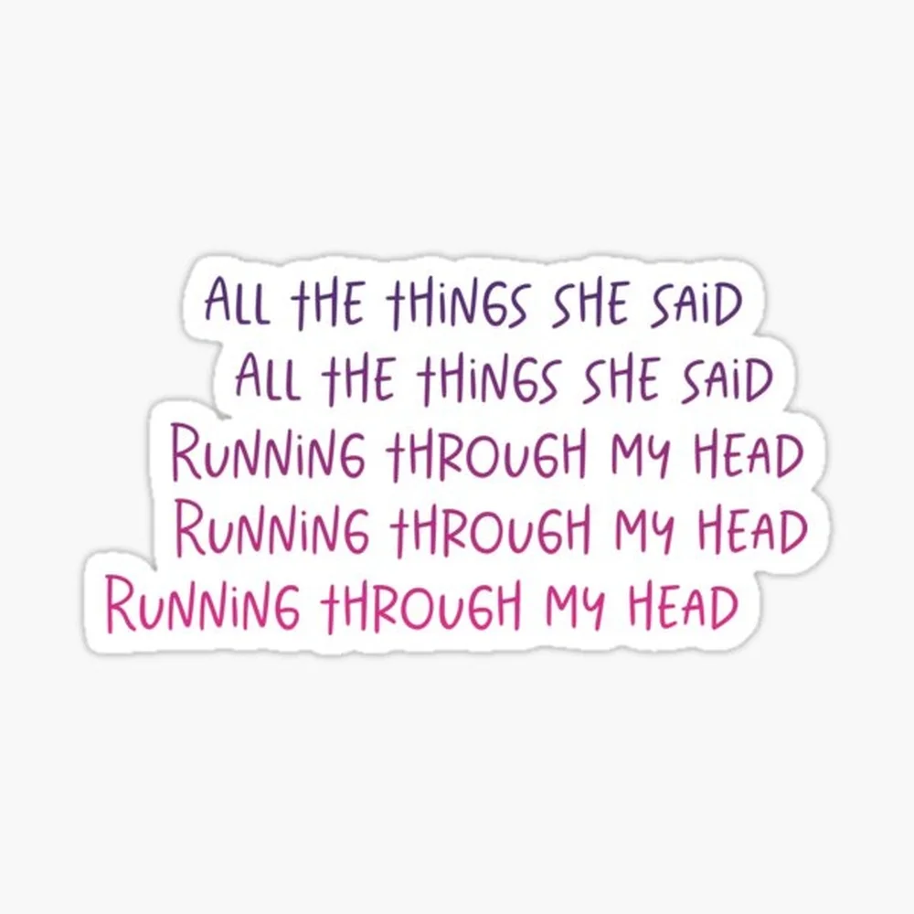 Todas las cosas que dijo pasan por mi cabeza | Pegatina de Rivalidad Calefactable para Decoración de Portátiles, Dormitorios, Coches, Diseño de Dibujos Animados, Estilo Moderno