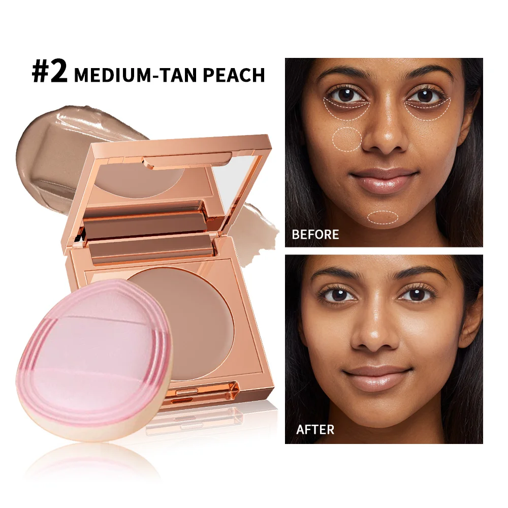 Corrector de Ojeras CC de Color con Borla, Cubre Ojeras, Acné y Poros, Larga Duración, Maquillaje Coreano, Ilumina la Piel