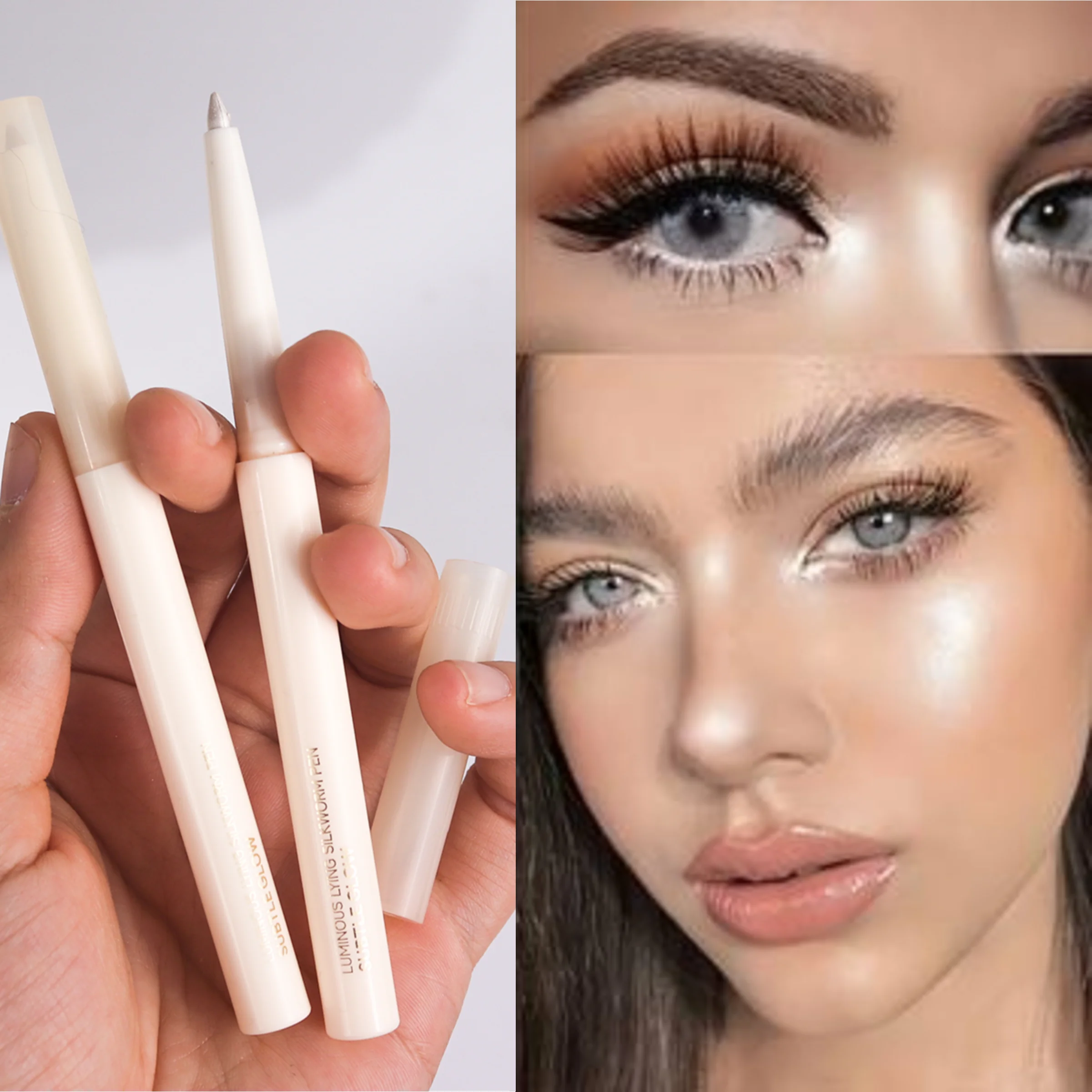 Lápiz resaltador de brillo perlado, lápiz de gusano de seda, resistente al agua, de larga duración, iluminador de ojos, maquillaje de ojos plateado, nuevo