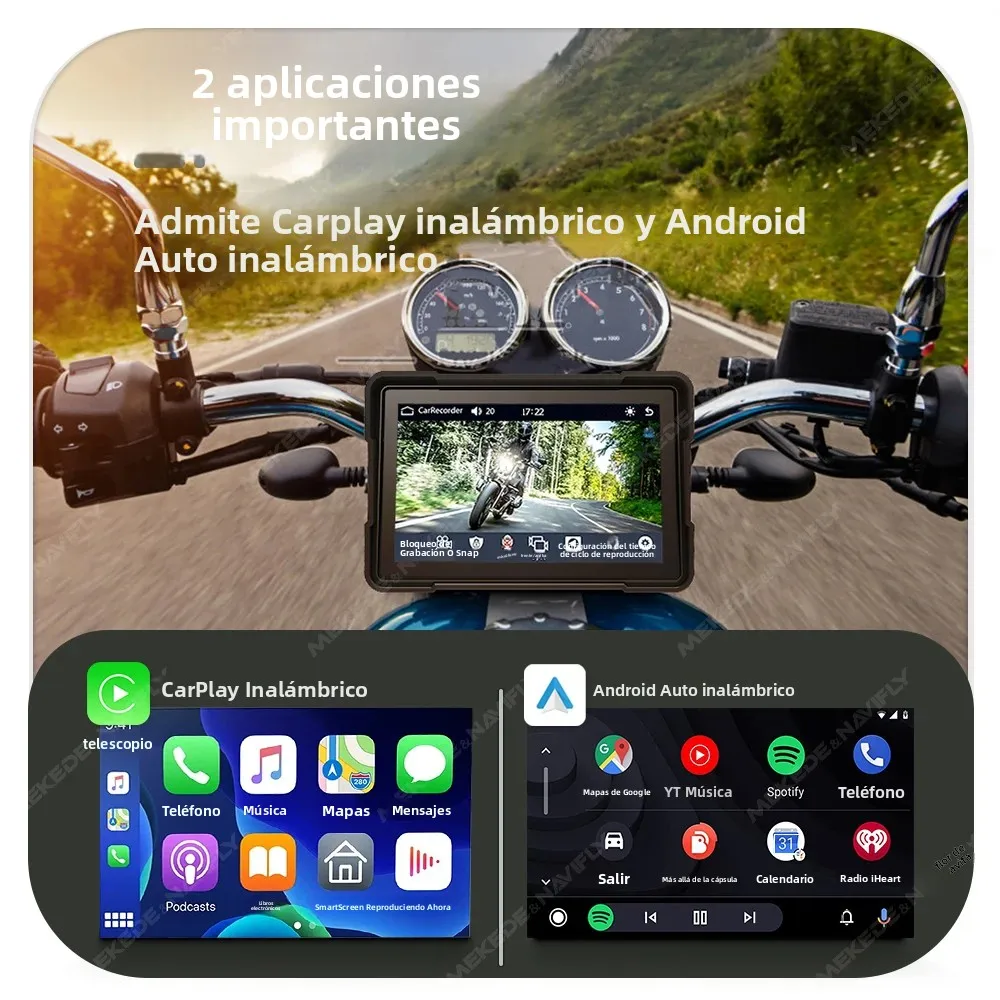 Navegador de pantalla táctil para motocicleta de 5" - Soporte de manillar impermeable inalámbrico CarPlay Android Auto Dual Bluetooth IP66