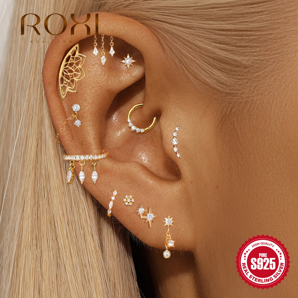 Aide-pendientes de plata de ley 925 para mujer, Piercing de hélice Tragus, estrella de circonia, flor, Labret, anillo para labio, cartílago, joyería Punk, 1 ud.