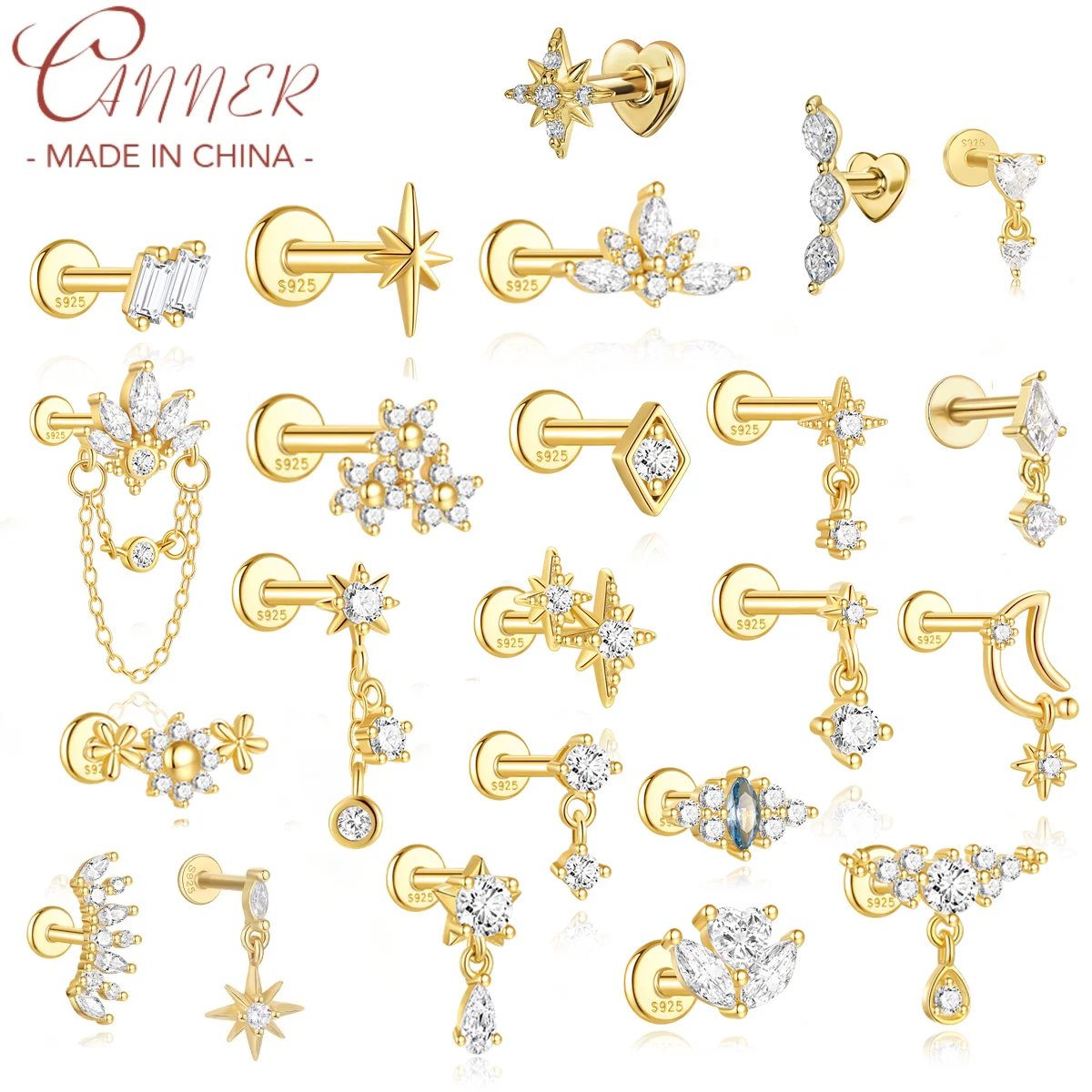 CANNER, 1 pieza, moissanita, ojo de caballo, pendiente de perforación para mujer, Plata de Ley 925 INS 2/3/4mm, pendiente circular redondo, regalo de boda