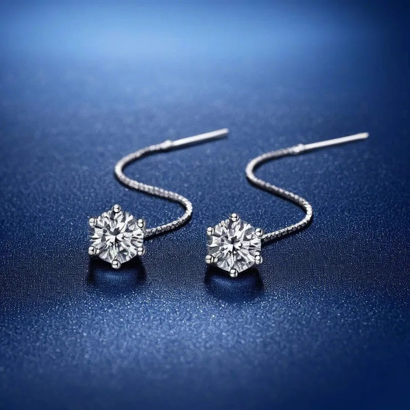 Pendientes originales de Plata de Ley 925 con cadena larga, pendientes de diamantes de moissanita de 1,4mm para mujer, regalo de joyería de tendencia 2023