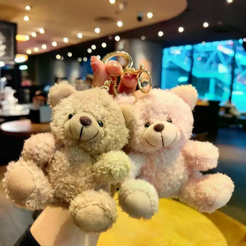 Llavero de peluche de oso, muñeco de dibujos animados rizado sentado, mini juguete para niñas, decoración para bolso o cartera