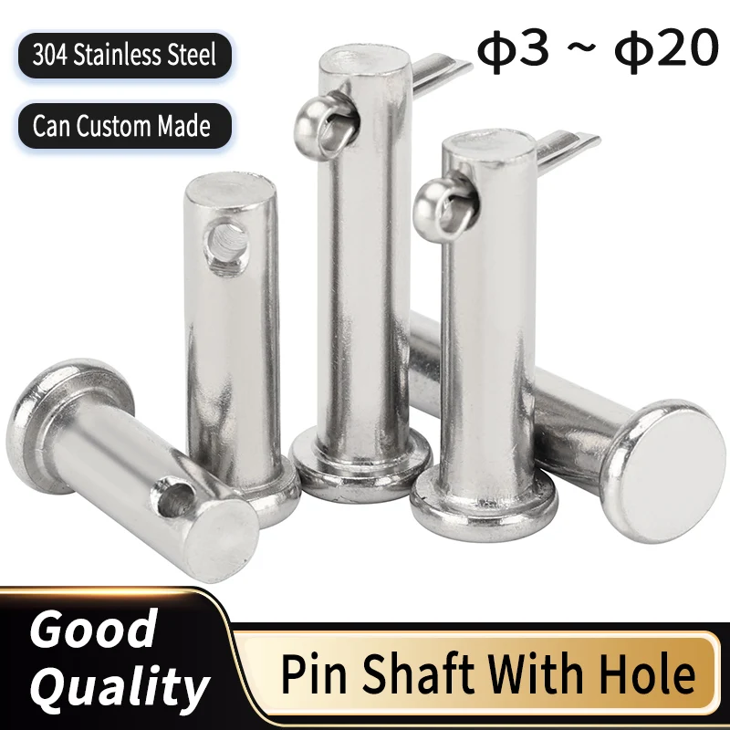 Eje de pasador de acero inoxidable 304 con orificio, surtido de pasadores de cabeza plana M3 M4 M5 M6 M8 M10 M12 M14 M16 M18 M20, longitud 8mm-150mm