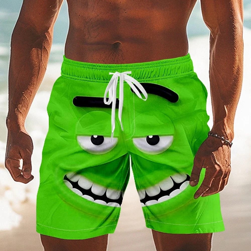 Pantalones cortos con estampado 3D de cara sonriente divertida, tipo transpirable de secado rápido, juego de playa informal y de moda