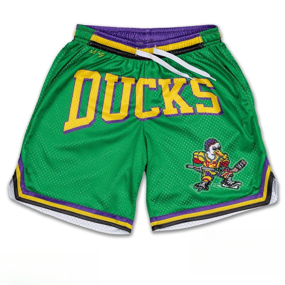 Mighty Ducks Hockey pantalones cortos de malla Retro logotipo de mascota pato clásico Vintage Casual baloncesto playa ropa deportiva atlética pantalones