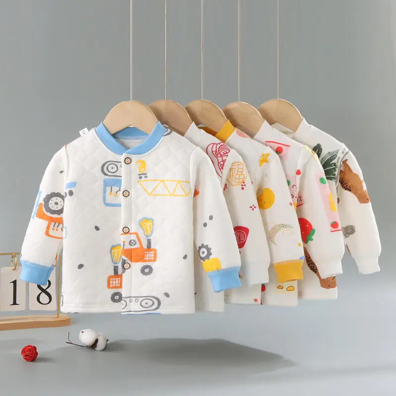 Ropa interior térmica para niños y niñas, Tops acolchados de manga larga para otoño e invierno, ropa cálida de otoño con dibujos animados, ropa cómoda para niños