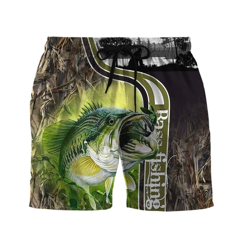 Pantalones cortos con gráficos de pesca de pescado Vintage para hombre, pantalones cortos deportivos al aire libre de secado rápido, pantalones cortos de playa informales de verano Y2k para uso diario