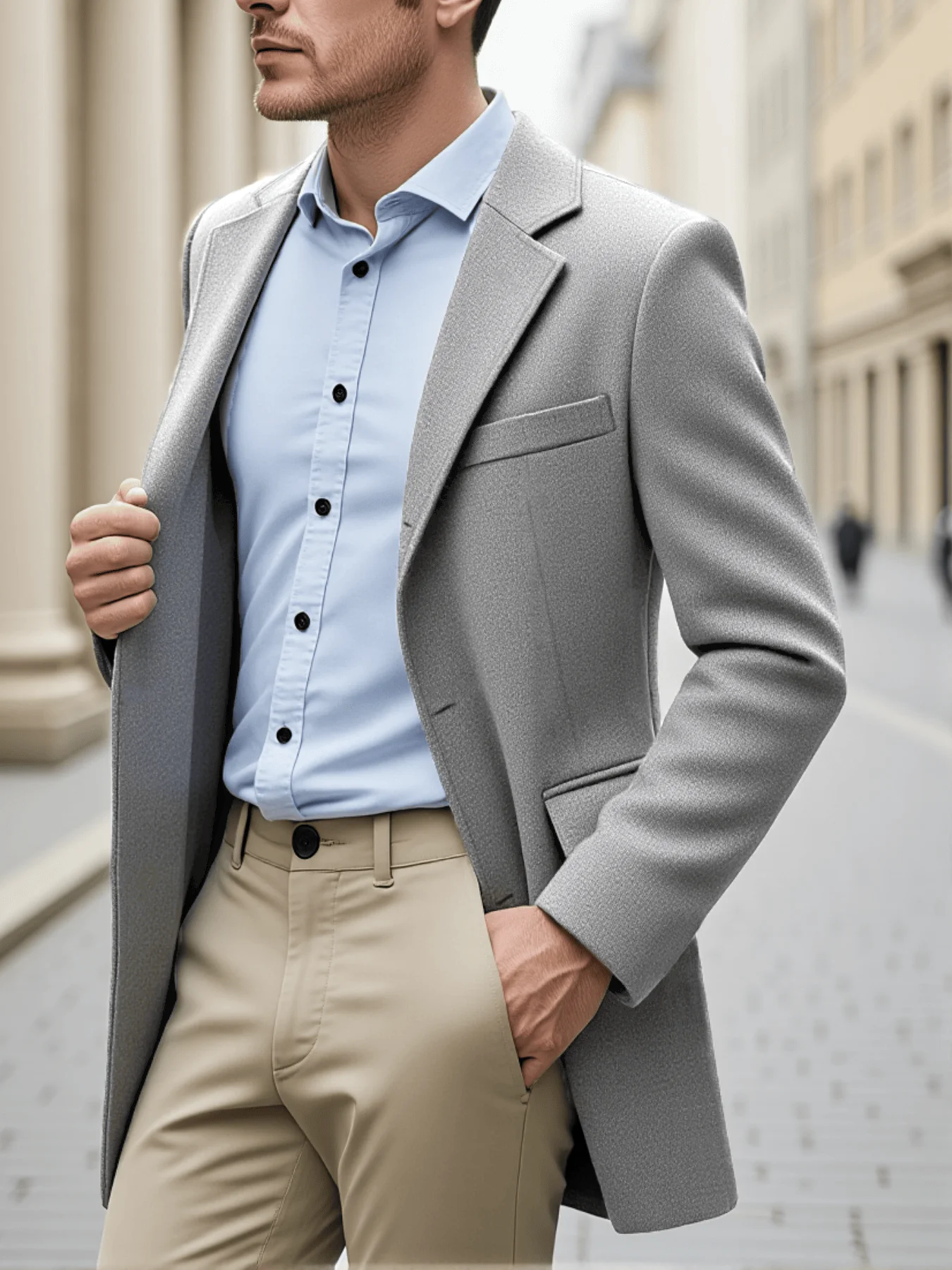 Gabardina de moda para hombre, chaqueta gruesa de otoño e invierno, gabardina de un solo pecho, abrigo cálido y cómodo para ir al trabajo, gabardina