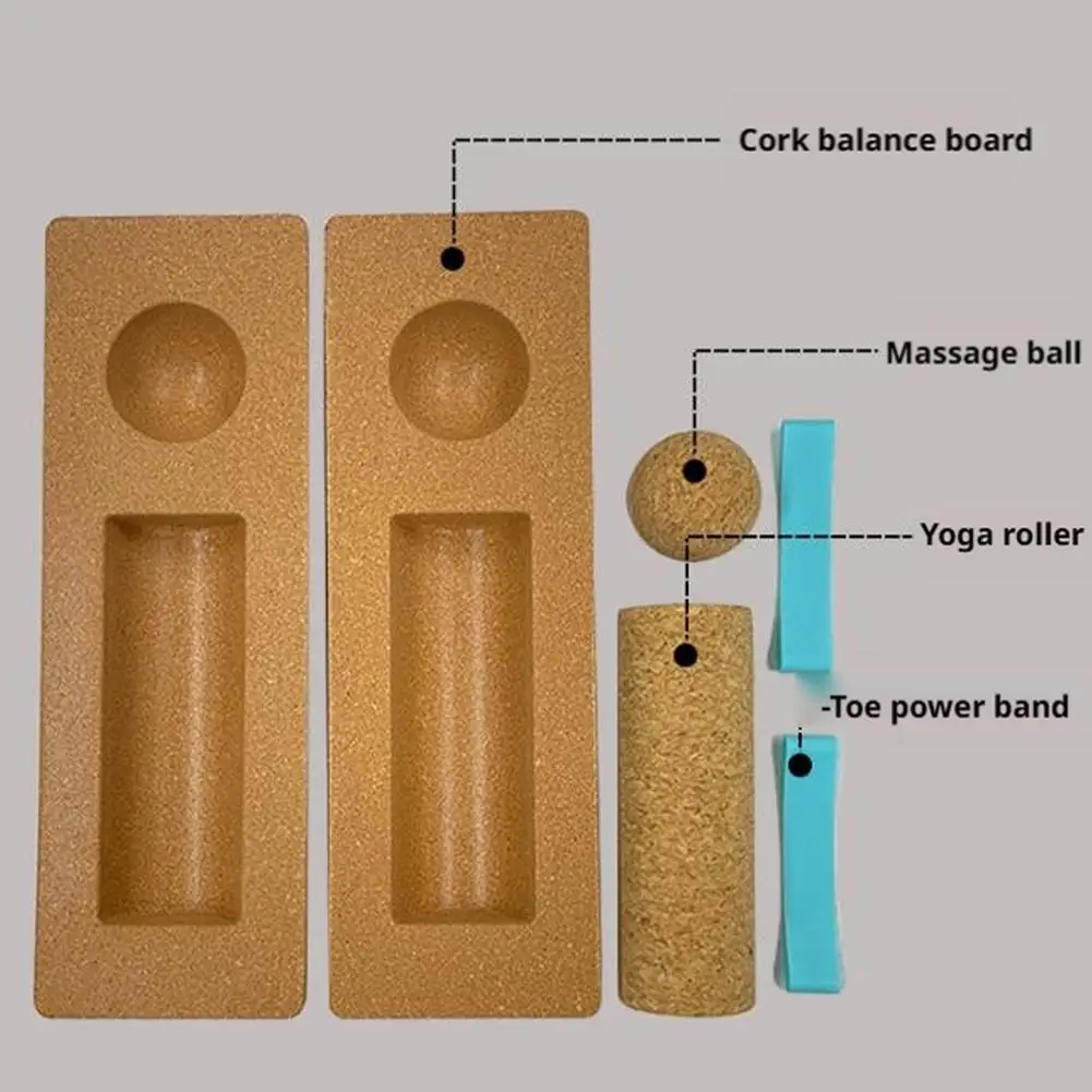 Tabla de equilibrio de corcho, fortalecedor de pies, función mejorada del pie, entrenador de estabilidad del tobillo, columna de masaje de Yoga semicircular portátil