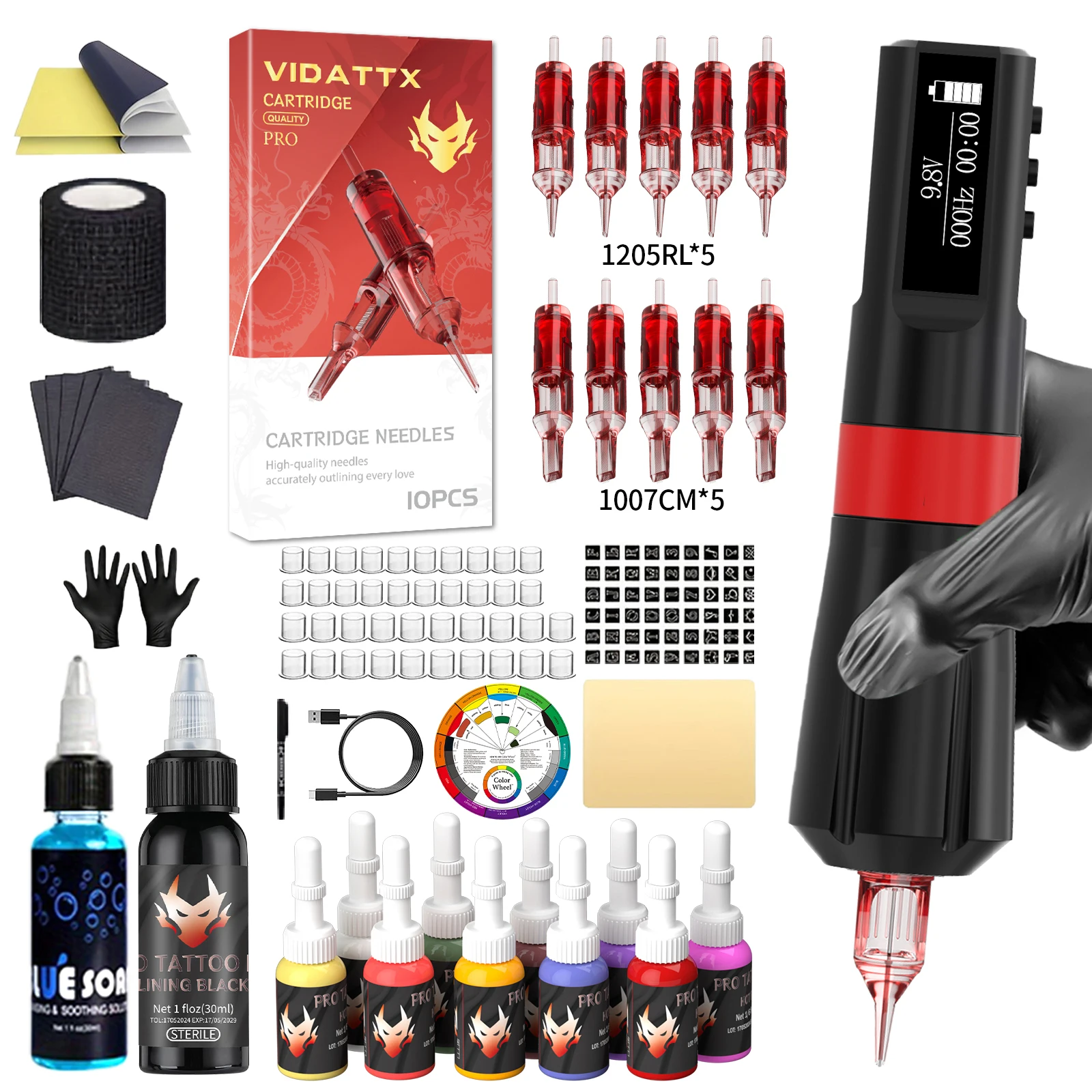 XNET Vipera-Kit de máquina de tatuaje inalámbrica, carrera ajustable, pantalla OLED de 2,4-4,2mm, 60 uds., cartucho de tatuaje mixto para artistas de tatuajes