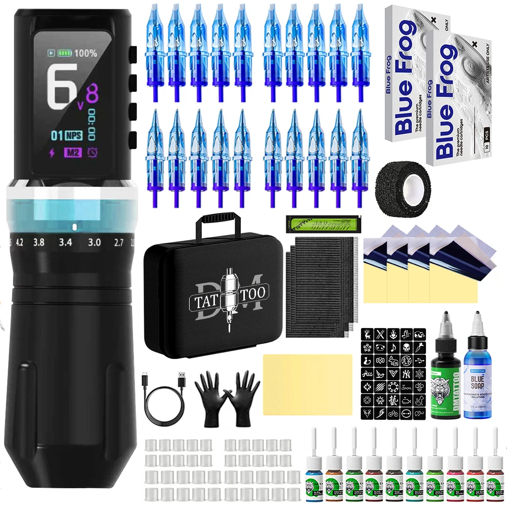 Kit de tatuaje DM, kit de pluma de tatuaje ajustable para maquillaje permanente, kit de máquina de tatuaje, kit de pistola de tatuaje inalámbrica de alta calidad