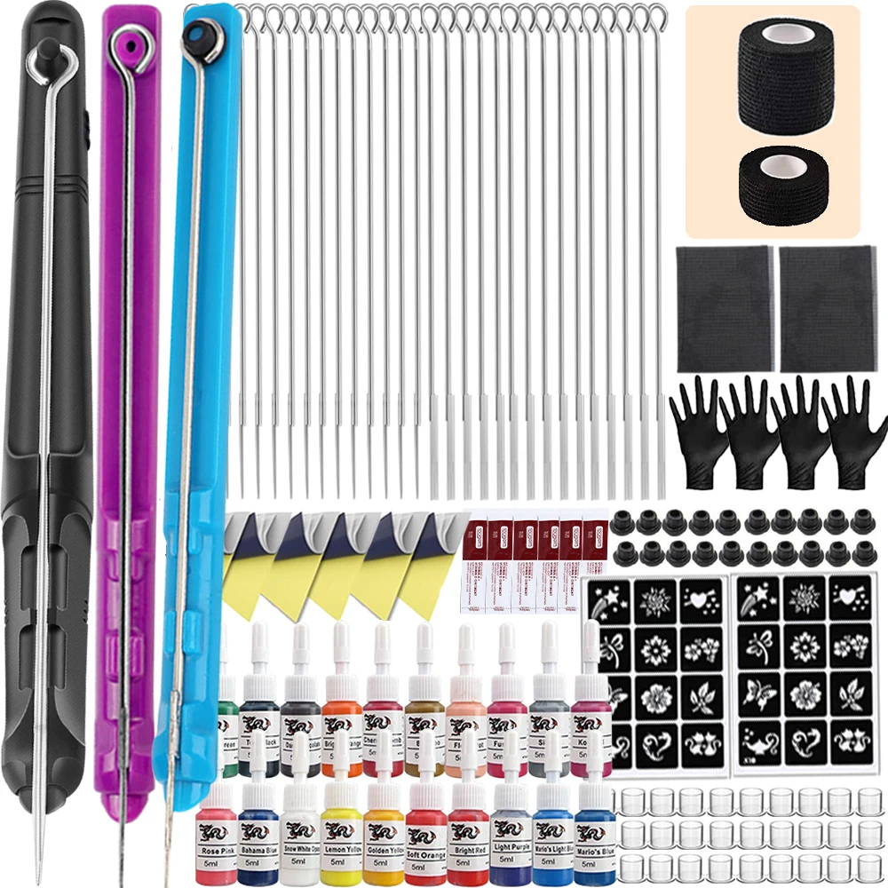 Kit de tatuaje de mano y palo con soporte para agujas de tatuaje, juego de accesorios de tinta para bricolaje, Kit de tatuaje de palo de mano 3D