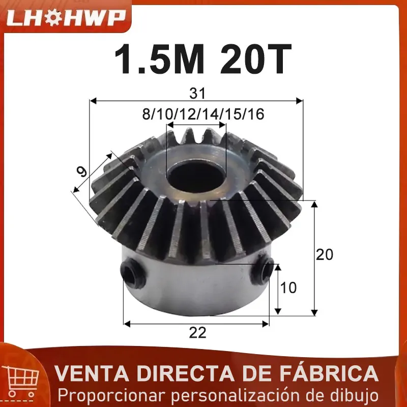 Engranaje cónico 1,5 M 20 orificios de dientes 8/10/12/14/15/16 orificio estándar 45 superficie de diente de acero enfriamiento engranaje cónico agujero de tornillo fijo