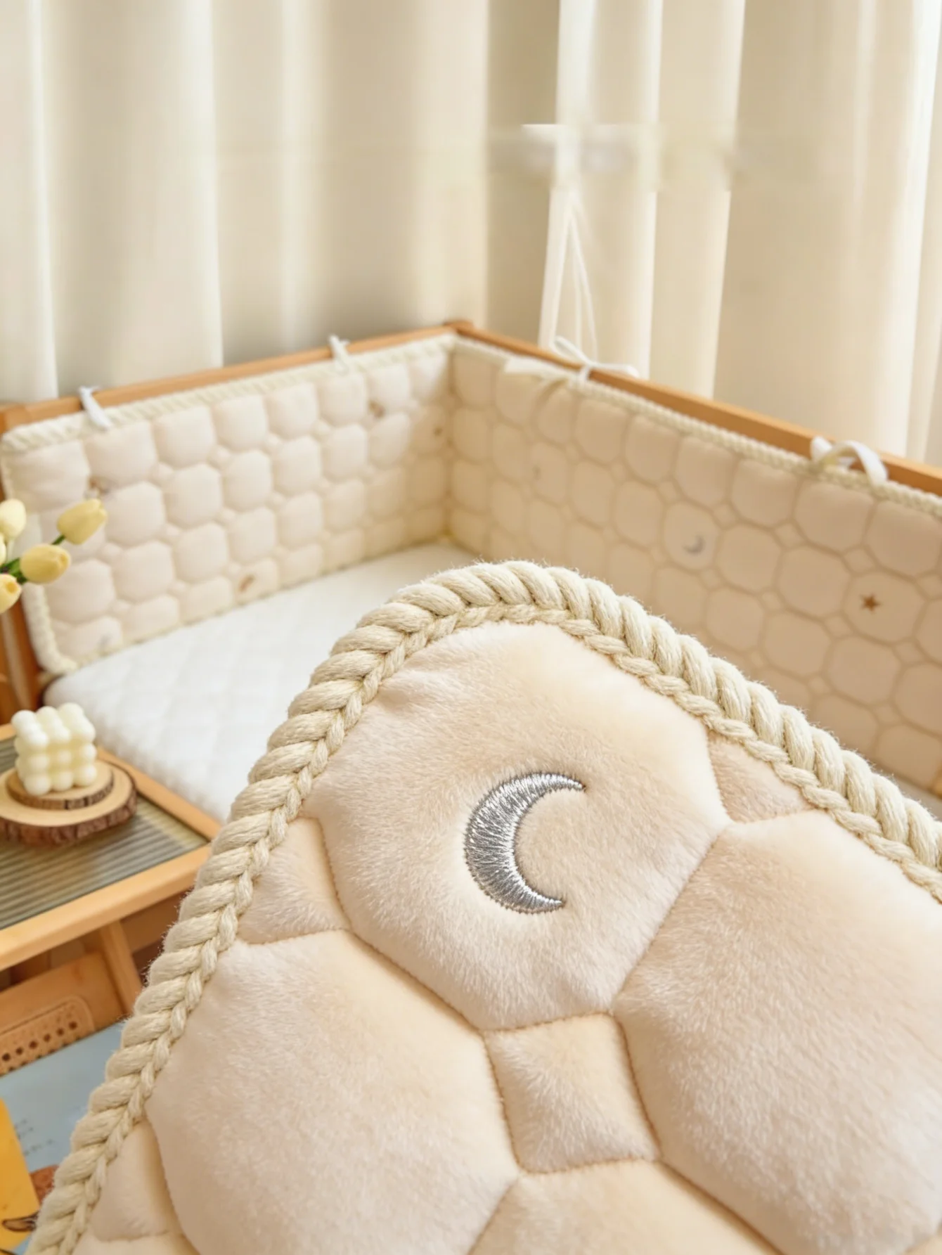 Parachoques para cuna de bebé, parachoques para cuna hecho a mano, transpirable, suave, de felpa, anticolisión, almohada trenzada agradable para la piel, habitación de guardería