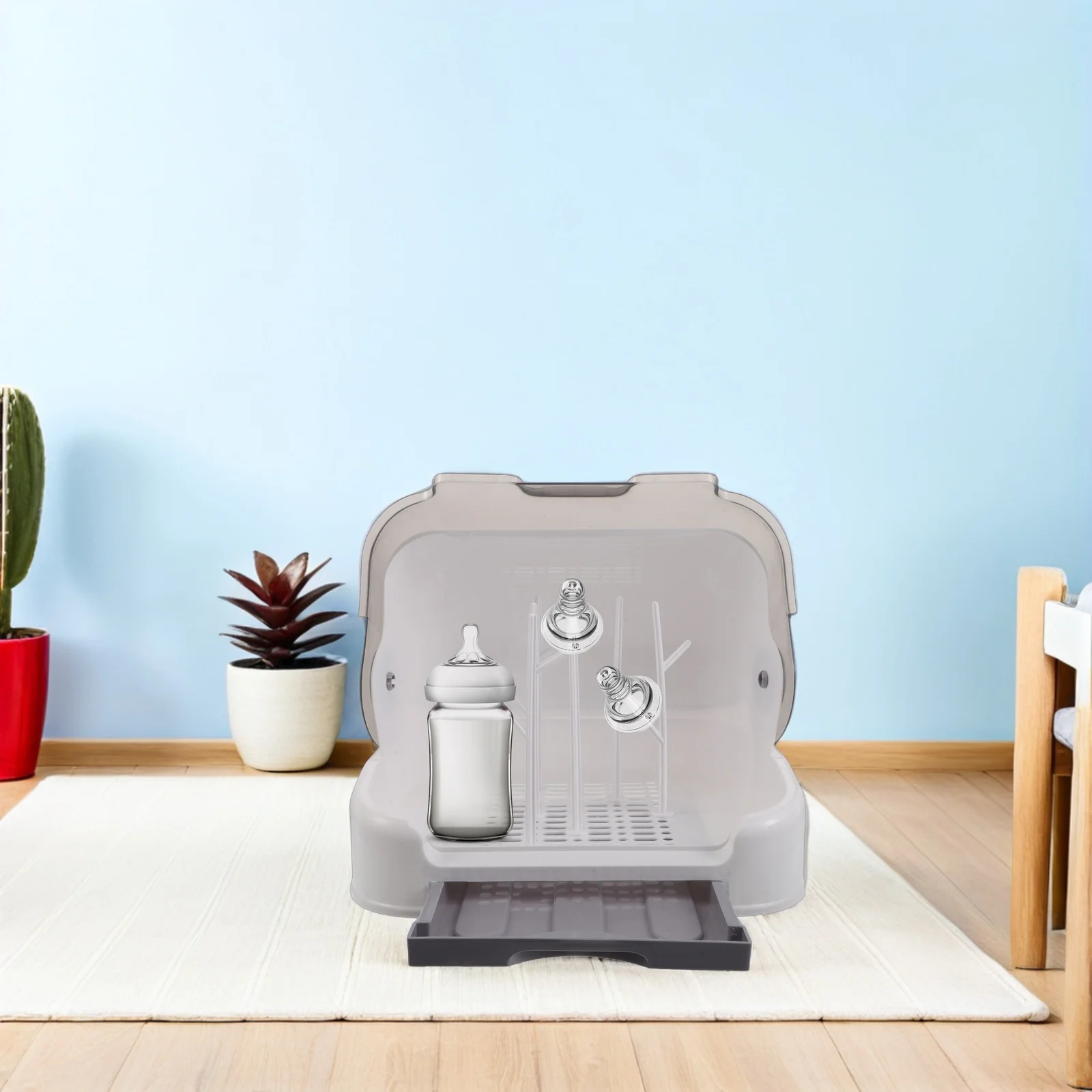 Tendedero para biberones, caja de almacenamiento para biberones a prueba de polvo con bandeja de goteo extraíble con tapa, tendedero para encimera para biberones