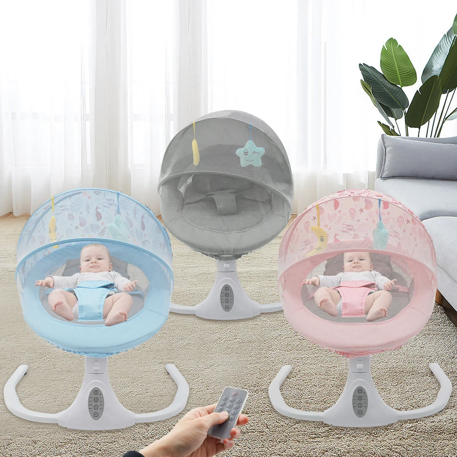 Columpios para bebés, columpio infantil con 4 velocidades, 12 canciones de cuna, columpio eléctrico para bebé, arnés de 3 puntos y control remoto