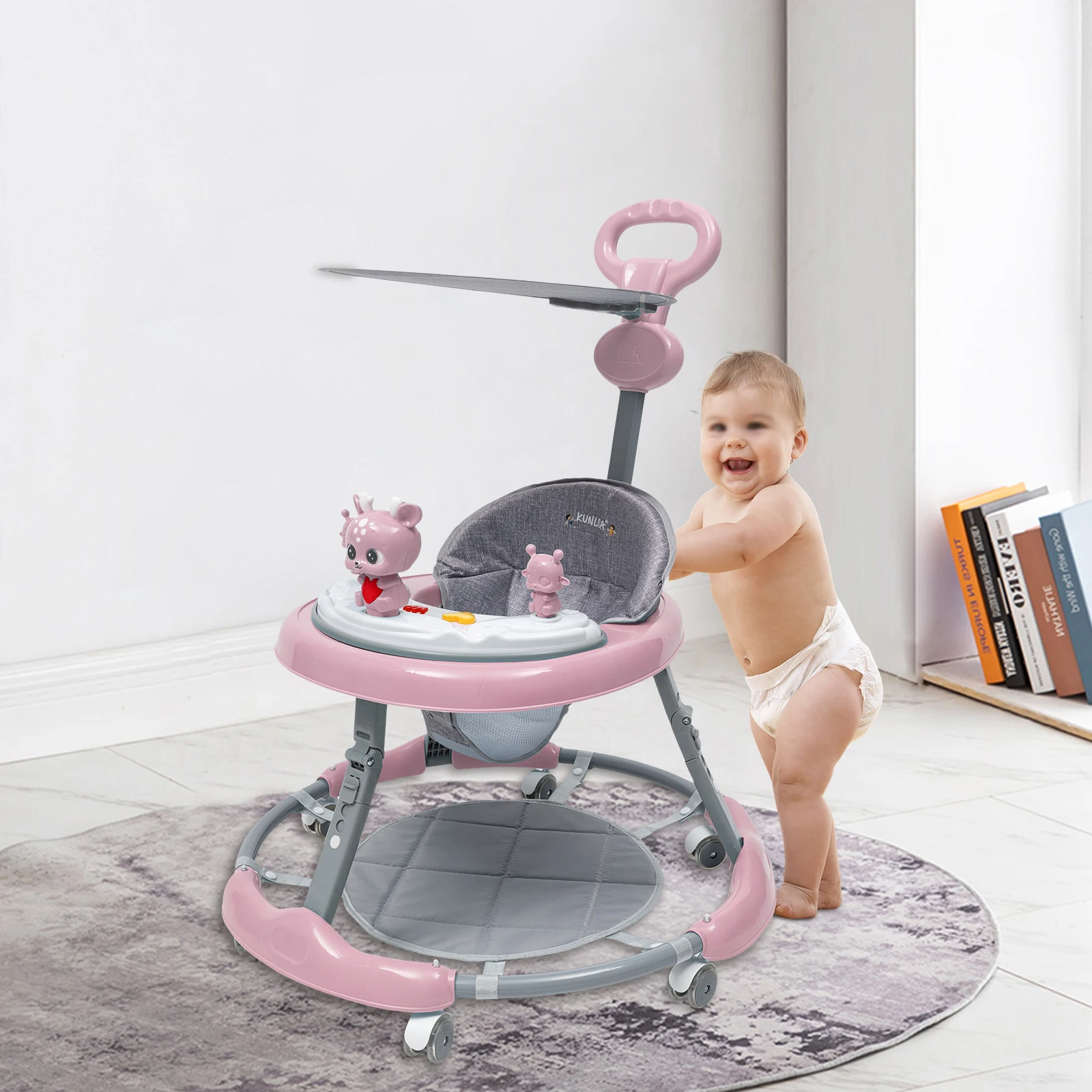 Andador para bebé con música, patas plegables en forma de O y altura antideslizante ajustable para bebés de 6 a 18 meses