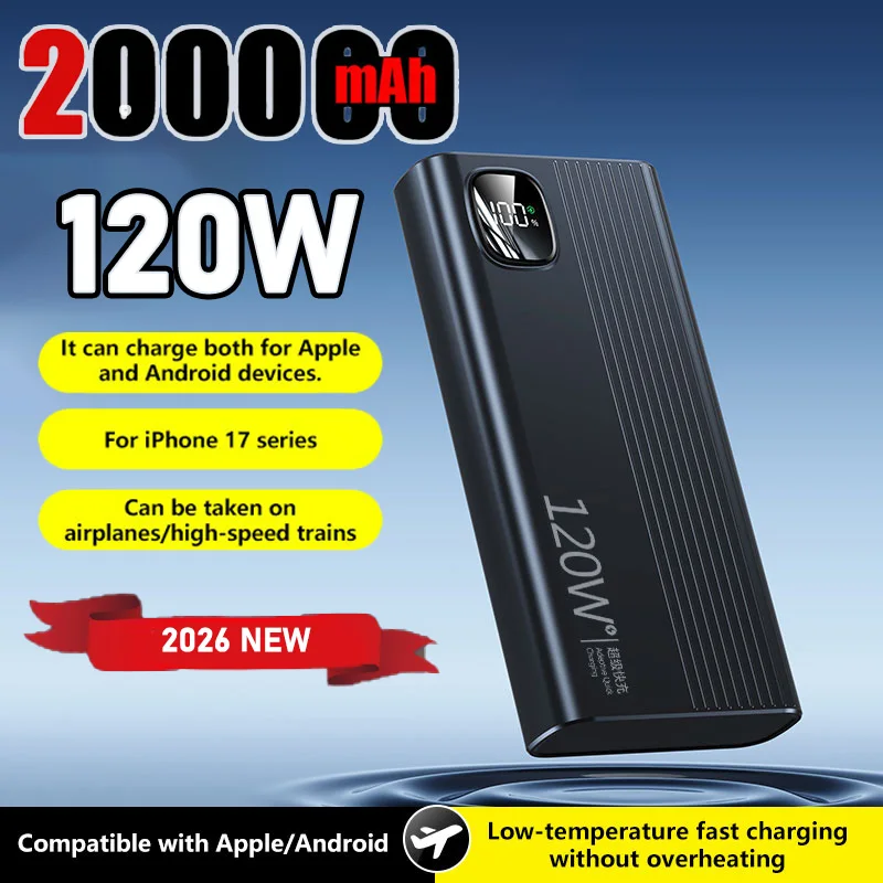Nuevo Banco de energía de alta capacidad de 200000mAh, cargador de batería portátil de carga súper rápida de 120W para iPhone, Samsung, Huawei