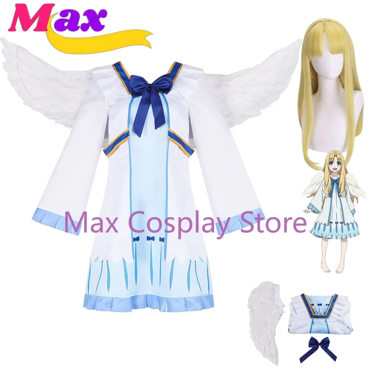 Max Anime Filo Cosplay disfraz peluca vestido de princesa azul alas de plumas mujer adulta encantador traje de Halloween