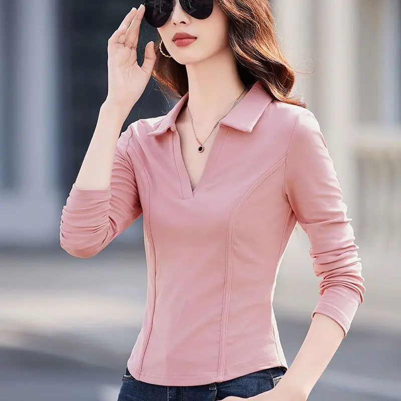 Blusa Informal de Moda para Mujer, Cuello Solapa, Corte Ajustado, Estilo Informal, Camisa Básica Elegante para Combinar con Atuendos Diarios