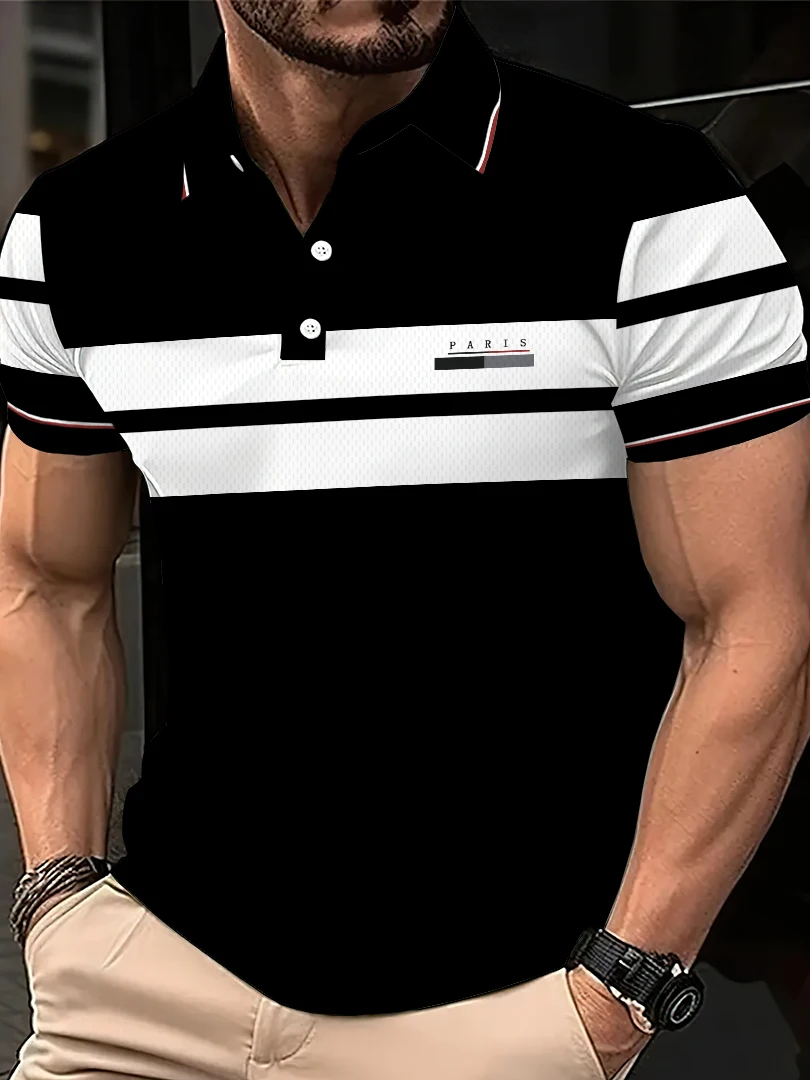 La nueva camiseta POLO de manga corta para hombre para el verano de 2025, presenta un estampado de letras 3D informal, moderno y cómodo.