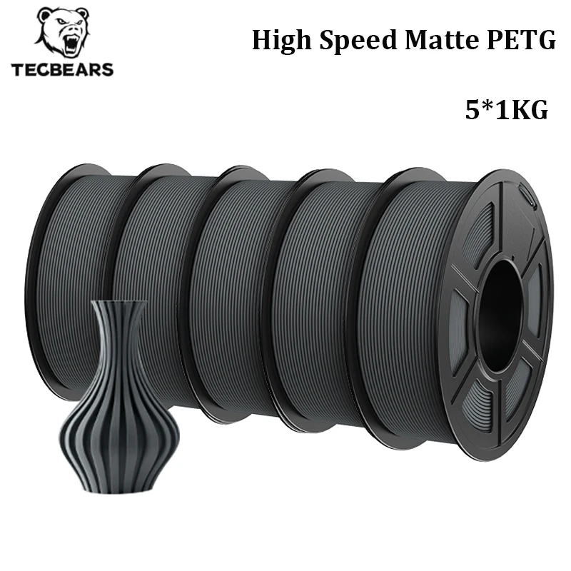 Filamento PETG Mate de Alta Velocidad TECBEARS, 1.75mm, 5KG, 600mm/s, Bobinado Ordenado, Multicolor, Materiales para Impresora 3D FDM, Regalo DIY