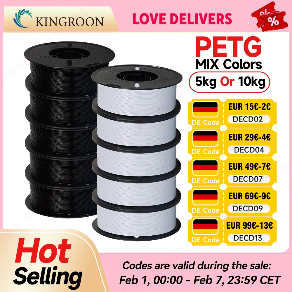 KINGROON-filamento PETG de 10KG/5KG/1KG, 1,75mm, alta dureza, venta al por mayor, 10 rollos/5 rollos/1 rollo de materiales de impresión 3D para impresora 3D