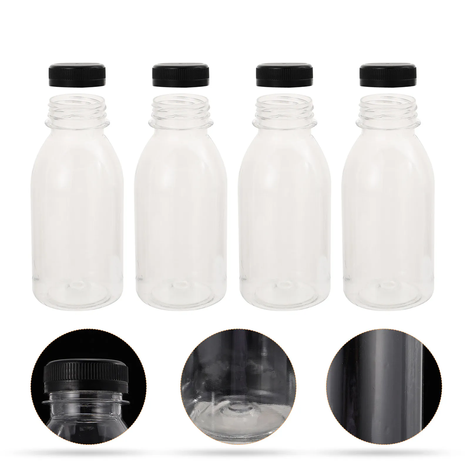 Botellas de plástico portátiles para jugo, contenedores reutilizables para almacenamiento de leche, botellas pequeñas transparentes con tapa, frascos para bebidas de viaje, 5 uds.
