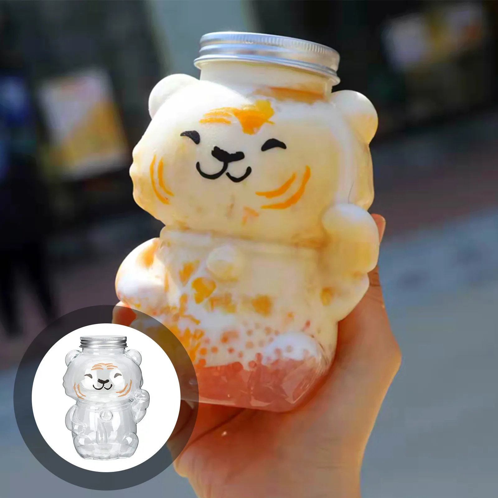 6 botellas transparentes de plástico para té con dibujos animados, recipientes para jugo a prueba de fugas, portátiles, de calidad alimentaria, para almacenamiento de bebidas.
