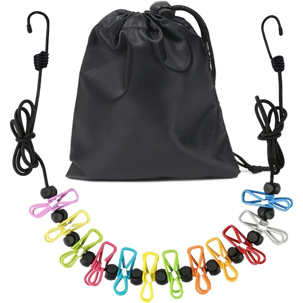 Tendedero de viaje elástico portátil, tendedero para exteriores a prueba de viento con 12 Clips, línea de secado de ropa para patio trasero y balcón