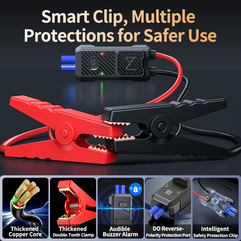 Arrancador de Coches Portátil EAFC 4000A / 2000A, Batería Externa, Potenciador de Batería de Coche, Dispositivo de Arranque Auxiliar para Diésel y Gasolina con Clip Inteligente