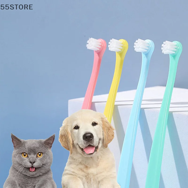 Cepillo de dientes de doble cabeza para perro y gato, herramienta de limpieza multiángulo, cuidado de masaje, cepillo de dedo, suministros para mascotas